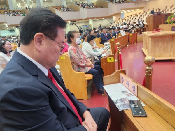 조전혁 전 의원, 여의도순복음교회 예배 참석