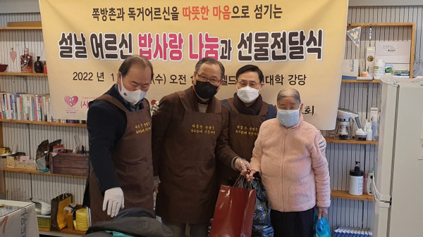 쪽방촌과 독거어르신 및 거동 불능한 독거어르신을 섬기는 사단법인 해돋는 마을(이사장 장헌일, 신생명나무교회 목사)은 구호개발NGO (사)월드뷰티핸즈(회장 최에스더 신한대 뷰티헬스사이언스과 교수)와 협력하여 쪽방촌과 독거어르신을 위해 “설날어르신 밥사랑 나눔과 선물전달식”을 갖고 따뜻한 마음을 전했다.