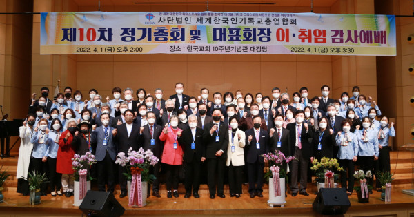 사단법인 세계한국인기독교총연합회(이하 세기총, 대표회장 신화석 목사, 사무총장 신광수 목사)는 1일 오후 2시 서울시 종로구 소재 한국교회백주년기념관 대강당에서 제10차 정기총회를 개최하고 신임 대표회장에 신화석 목사(사단법인 AWMJ선교회 이사장, 안디옥성결교회 원로)를 대표회장에 추대했다.
