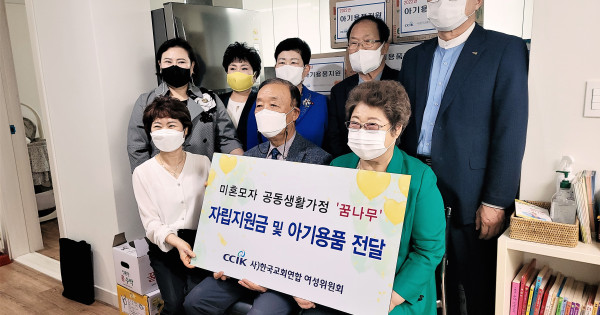 한국교회연합(대표회장 송태섭 목사)이 11일 오전 서울 구로구 소재 미혼모자 공동생활가정 ‘꿈나무’(원장 박미자 권사)를 방문해 자립지원금 100만원과 아기용품을 전달하는 등 아낌없는 사랑과 나눔을 실천에 옮겼다.