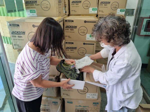 안전화는 유한킴벌리에 납품하는 업체(대표 오길환)에서 기부를 받은 것으로, 이곳은 지난번 마스크 20만장과 코로나 방호물품도 기부한 바 있다.