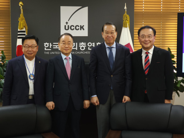 권영세 통일부 장관이 11일 한국교회총연합(이하 한교총)을 예방하여 류영모 대표회장, 고명진 공동대표회장, 김기남 공동대표회장과 환담했다.