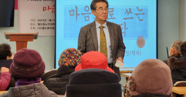 K-뷰티소사이어티연구소(KBSI:소장 최에스더 신한대 교수)는 사회개발NGO (사)월드뷰티핸즈(이사장 장헌일)와 엘드림노인대학 주관으로 국내 최초 쪽방촌과 독거어르신을 대상 시문학강좌를 개설했다.