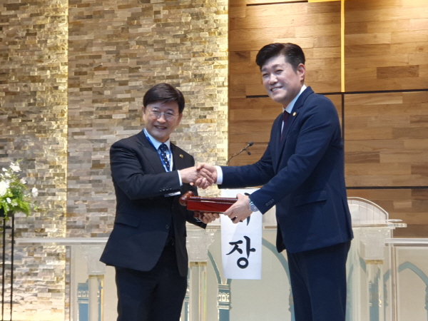 이후 정 당선인에게 엄기호 선거관리위원장이 대표회장 당선패를 교부하고, 임시대표회장 김현성 변호사는 의사봉을 인계했다.