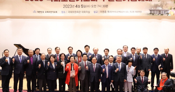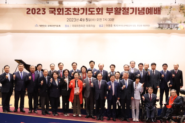 이날 기도회로 모인 여야 국회의원들은 사망 권세 이기시고 승리하신 예수님의 부활과 영광을 위해 간절히 기도했다.