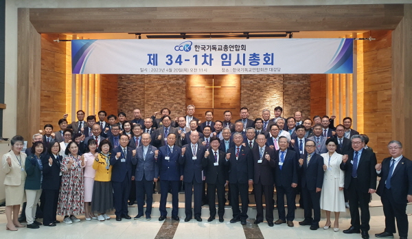 한국기독교총연합회(대표회장 정서영 목사, 이하 한기총)는 20일 오전11시 한국기독교연합회관 3층 아가페홀에서 제34-1차 임시총회를 열고 주요 안건들을 처리했다. 회의는 회원점명 후 성수보고, 개회선언, 전회의록 채택, 경과 및 사업보고와 안건토의가 이어졌다.