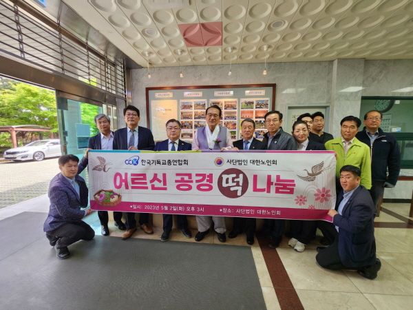 한국기독교총연합회(대표회장 정서영 목사, 이하 한기총)는 2일(화) 오후 대한노인회에서 가정의 달인 5월을 맞아 ‘어르신 공경 떡 나눔’ 행사를 진행했다. 행사에는 대한노인회 김호일 회장, 한기총 김정환 사무총장 등이 참석했고, 다누리푸드 이종섭 대표가 떡 5,000만원 상당을 후원했다.