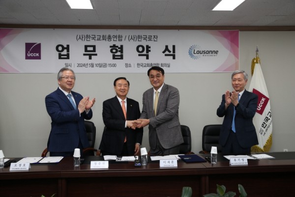 한국교회총연합(이하 ‘한교총’)은 ‘제4차 로잔대회’를 4개월여 앞둔 10일 한국로잔위원회(이하 ‘한국로잔’)와 업무협약을 체결하고, 9월 22일부터 28일까지 송도 컨벤시아에서 열리는 ‘제4차 서울-인천로잔대회’에 적극 협력하기로 했다.