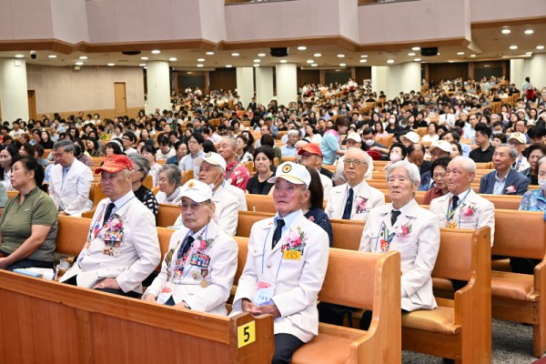 예배에서는 또 참전용사들의 희생과 헌신을 영원히 기억하자는 다짐을 담은 기념영상도 상영됐으며 한목소리로 애국가를 제창했다.