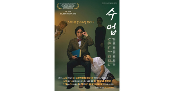 연극<수업>은 2024년 7월 10일부터 7월 31일까지 금천 뮤지컬센터 예술극장에서 공연됐으며 배우 황진우, 강아름, 허혁, 원덕희가 출연한다. 이 작품은 '보이지 않는 칼이 당신을 살해한다'는 강렬한 메시지를 중심으로 관객들에게 색다른 경험을 선사했다.