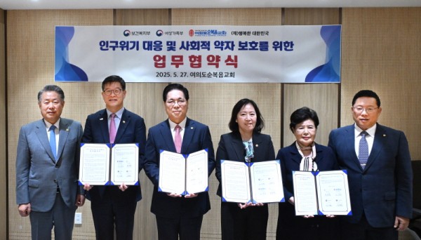 여의도순복음교회(이영훈 목사)는 27일 심화되는 저출산 위기와 사회적 약자 보호를 위한 실질적 대응을 위해 정부 부처 및 민간 기관과 ‘복지정책 협력 업무협약(MOU)’을 체결했다.