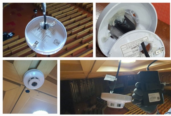 윤 목사는 “기존 화재감지기와 외형은 동이하게 보였지만, 실체는 몰래카메라였다”면서 “일반 화재감지기의 내용물을 제거하고 그 안에서 CCTV용 초소형 카메라를 장착했다. 외부에서는 카메라임을 전혀 알 수 없게 화재감지기로 위장했다”고 말했다.