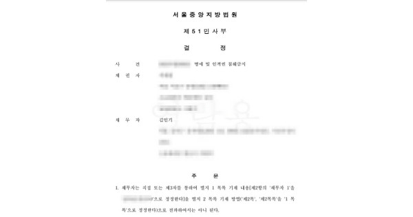 ‘명예 및 인격권 침해금지’ 가처분 결과, 법원 전파행위 금지