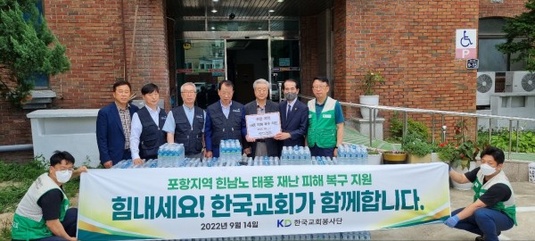 한국교회봉사단(총재 김삼환 목사 이사장 오정현 목사 대표단장 김태영 목사)은 태풍 힌남노가 지나가면서 강풍과 집중폭우로 10명이 목숨을 잃고 교회당과 집이 침수된 포항재난지역을 13–14일 방문 위로했다.