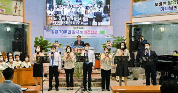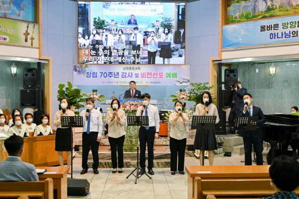 “지난 70년의 모든 역사는 하나님의 은혜이며 인도하심였음을 고백하며 하나님께 영광과 감사를 올려 드린다”며 “70주년을 맞아 다음세대부터 세계열방까지 품은 선교사역으로 하나님을 미소짓게 하는 교회의 비전을 선포한다”고 말하며, 목표, 중점추진과제, 핵심가치 등을 나눴다.