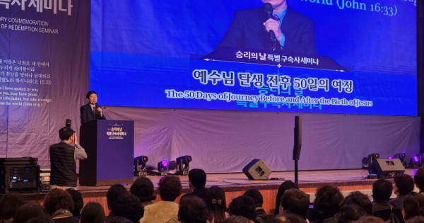 그러면서 예수님의 탄생 전후 50일의 여정은 사단마귀의 극심한 핍박과 방해에도 불구하고 승리의 발걸음이셨다면서 너희가 환난을 당하나 담대하라 내가 세상을 이기었노라 하신 말씀처럼, 하나님께 다 맡기면 하나님께서 때가 되면 모든 악을 끝내실 것이라고 역설했다.