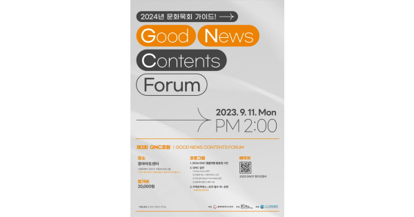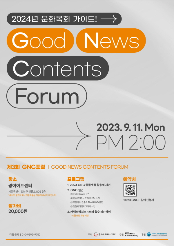 3Good News Contents Forum(이하 GNC포럼) 2023911() 오후 2시 청담동에 위치한 광야아트센터에서 진행된다.