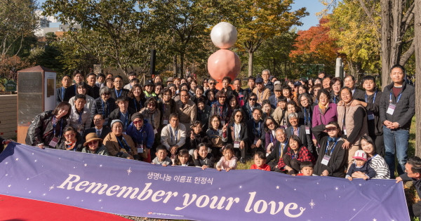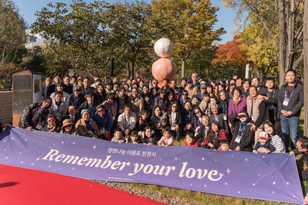 서울 동작구 보라매공원 장미원에 자리한 ‘뇌사 장기기증인 기념공간’에서 11월 1일(토) 낮 1시, ‘생명나눔 이름표 헌정식?Remember your love’이 진행됐다. 사랑의장기기증운동본부(이하 본부, 유재수 이사장)가 주관한 이번 행사에는 도너패밀리 68가정 등 130여 명이 참석해 고인의 이름이 새겨진 이름표를 기념공간 안내판에 직접 부착하며 사랑의 기억을 이어갔다. 이름표는 본부를 통해 도너패밀리를 3년째 지원하고 있는 한국다케다제약의 후원으로 제작됐다.