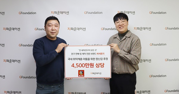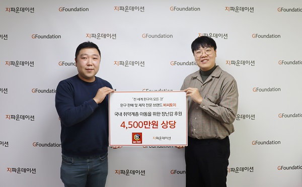 이에 지파운데이션 전재현 팀장은 “국내 취약계층 아동을 위해 소중한 나눔을 실천해 주신 비씨토이에 깊은 감사의 마음을 전한다. 이번 지원으로 아이들은 더 밝고 건강하게 성장할 수 있는 기회를 선물받을 수 있을 것이라 믿는다”라고 하며, “기부해 주신 물품이 필요한 곳에 잘 전달될 수 있도록 최선을 다하겠다. 국내 취약계층 이웃에 대한 관심과 사랑이 계속 이어져 더 따뜻한 세상이 만들어질 수 있길 바란다”라고 전했다.