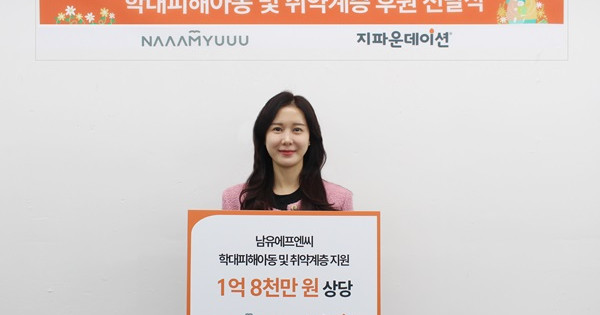 이에 지파운데이션 담당자는 “학대 피해 아동과 국내 취약계층 가정을 위해 남유네 제품과 기금을 후원해 주신 ㈜남유에프엔씨에 진심으로 감사드린다”라며, “이번 후원을 통해 학대 피해 아동에게 심리 정서적 회복과 취약계층 가정의 건강 회복을 도모할 수 있었다”라고 전했다.