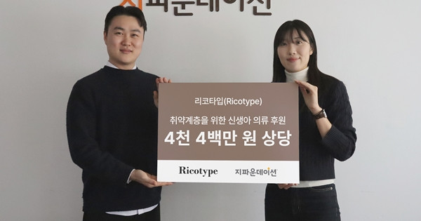 리코타입은 취약계층 아이들에게 위생적이고 질 좋은 의류를 입히며 건강하게 양육할 수 있도록 돕고 싶다는 마음으로 4천 4백만 원 상당의 신생아 및 유아 의류 1,720벌을 기부했다.