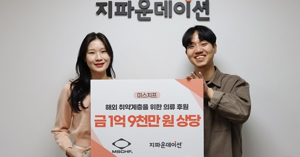 국제개발협력NGO 지파운데이션(대표 박충관)은 미스치프(대표 정지윤, 서지은)가 해외 취약계층을 위해 1억 9천만 원 상당의 의류를 기부하며 따뜻한 나눔을 실천했다고 8일 밝혔다.