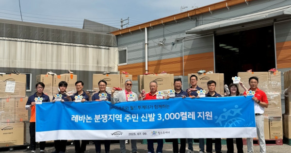 국제개발협력 NGO월드투게더(회장 김용우)는 바이네르(대표 김원길)를 방문해 레바논 전쟁지역 주민들을 위한 신발 3,000켤레 기부 전달식을 가졌다고 11일 밝혔다.