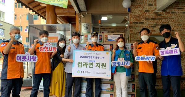 광명소방서(서장 최준)는 12일, 광명시사회복지협의회-광명희망나기운동본부(본부장 최효정)와 함께 광명마을냉장고 컵라면 지원 전달식을 진행했다.