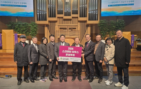 기간의 제한없이 선교지와 해외에서 입국한 선교사와 가족 및 목회자들이 초교파로 머물 수 있는 선교관과 선교지원 차량을 제공하고 있는 웨슬리사회성화실천본부(이하 웨사본·대표회장 홍성국 목사)는 “지난 2023년 웨사본과의 협약을 통해 스크랜턴 선교관 운영을 위한 임대료 지원 및 광범위한 협력을 약속하였으며, 지난 22일 아현교회(담임 김형래목사)가 주일 오전11시 대예배에서 2026년도 스크랜턴 하우스 운영을 위한 후원금 2천여만원을 지정 기탁하였다”고 밝혔다.