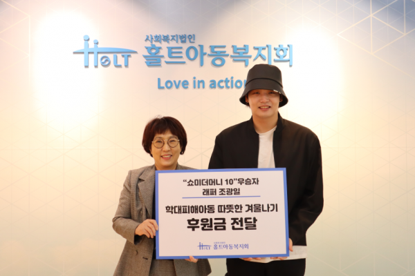 홀트아동복지회(회장 이수연)는 ‘쇼미더머니 10’ 우승 래퍼 조광일이 연말을 맞아 도움이 필요한 학대피해아동을 돕기 위해 후원금을 전달했다고 밝혔다.
