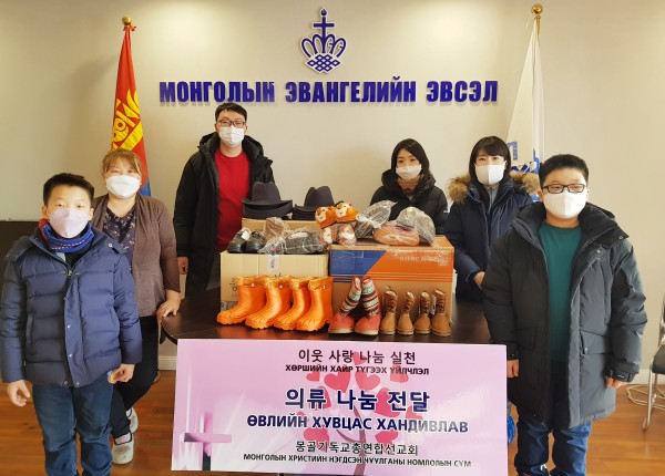 지역거점가정을 중심으로 전도운동을 시작한 몽골복음주의협회는 이번에 몽기총을 통해 전달받은 겨울의류와 아동 방한화, 모자 등을 전도물품과 나눔에 사용하겠다며 감사의 뜻을 전했다.