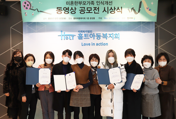 홀트아동복지회(회장 이수연)가 주최하고 한겨레신문사가 협찬한 ‘미혼한부모가족 인식개선 동영상 공모전’ 시상식이 22일 열렸다.