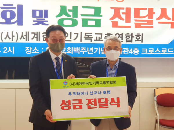 국내에 입국해 있는 선교사 16가정이 참석한 가운데 진행된 이번 성금 전달식은 지난 2월 초 한국 정부가 우크라이나 전 지역을 의무적 출국이 요구되는 '여행금지' 지역으로 지정하면서 아무런 준비도 없이 국내 혹은 우크라이나 인근 국가로 잠시 피해 있는 선교사들을 돕기 위해 세기총이 지난 모금운동을 전개했으며 이를 통해 모인 성금을 전달하는 시간으로 마련됐다.