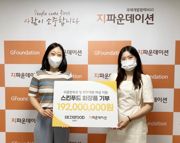 국제개발협력NGO 지파운데이션(대표 박충관)은 스킨푸드(대표 구도곤)가 1억 9천만원 상당의 화장품을 기부했다고 1일 밝혔다.
