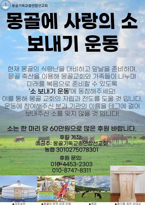‘소 한마리 60만원으로 몽골교회를 살립시다’
