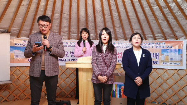 봉헌감사예배는 유미정 선교사의 사회와 가나 청년의 통역으로 진행됐다. 김명자 권사가 대표기도하고, 요한계시록 2:8~ 11 말씀을 몽기총 손혜미 간사가 한국어로 봉독한 후, 가나 청년이 몽골어로 성경봉독을 했다.