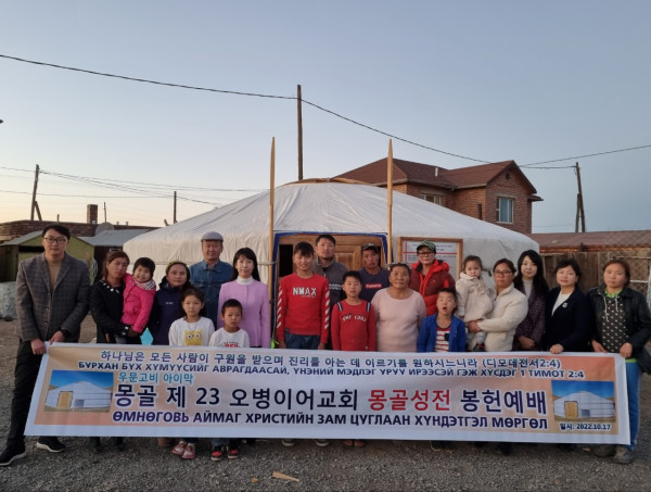 광명 오병이어교회(권영구목사)가 몽골기독교총연합선교회(법인회장 김동근 장로)를 통해 몽골에 제23교회를 건축하고 17일 봉헌했다.