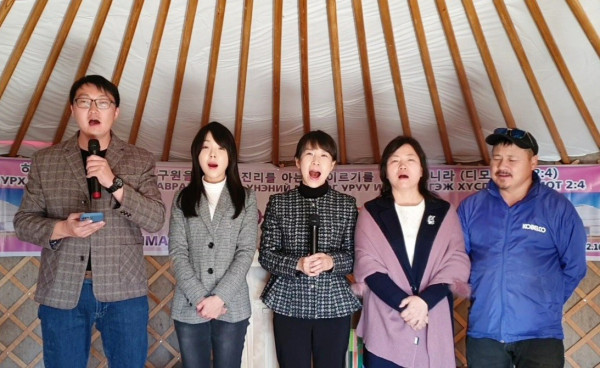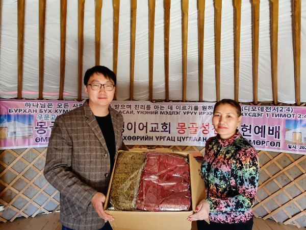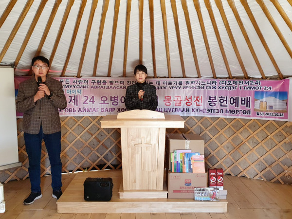 이번 몽골 제 24오병이어교회 게르성전은 광명 오병이어교회 조성재 신주은 집사부부의 후원으로 이루어졌다.