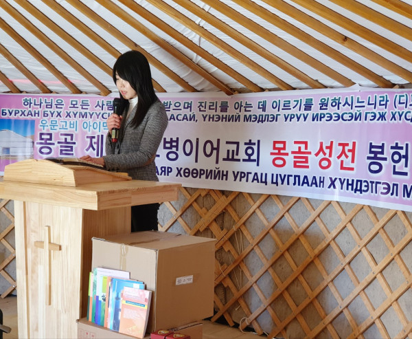 봉헌감사예배는 유미정 선교사의 사회와 가나 청년의 통역으로 진행돼 김명자 권사가 대표기도하고, 요한계시록 3장 7~13절 말씀을 손혜미 간사가 한국어로 봉독한 후 가나 청년이 몽골어로 성경봉독했다.