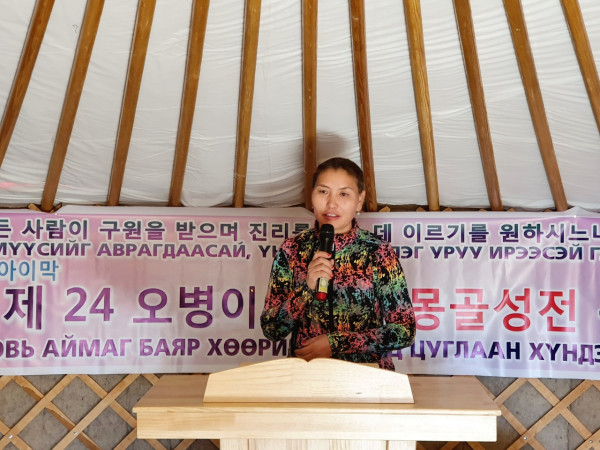 이어, 바야르 허링 오르가츠교회 담임 사역자인 바야르마 전도사는 “몽기총을 통해 게르성전을 사용할 수 있게 되어 너무 기쁘고 감사하다. 몽기총의 성전건축이 몽골 뿐 아니라 세계로 더욱 넓어질 것이라 믿는다”고 인사했다. 이와 함께 “2005년 아버지가 먼저 예수님 믿고, 지금은 내가 교회를 개척하고 섬기게 됐다. 그동안에는 사무실 등을 임대해서 옮겨가며 예배드렸었는데 그마저도 재정 문제와 교인증가로 모이기가 많이 힘들었는데 이렇게 게르성전이 생겨 너무 감사하다”고 했다.