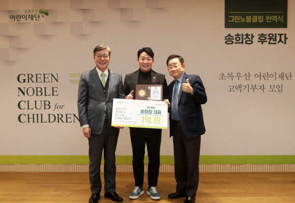 초록우산어린이재단 관계자는 “그린노블클럽은 국내 기부문화를 선도하며 아동을 돕기 위해 앞장서는 고액후원자모임으로, 아이들의 꿈과 미래를 응원하기 위해 시작됐다”며 "송희창 후원자님의 삶의 방향성과 선한 영향력은 우리 아이들에게도 이어져, 어린이가 더 나은 미래를 꿈꾸며 건강하게 자라나는 원동력이 되어 줄 것이다”라고 전했다.