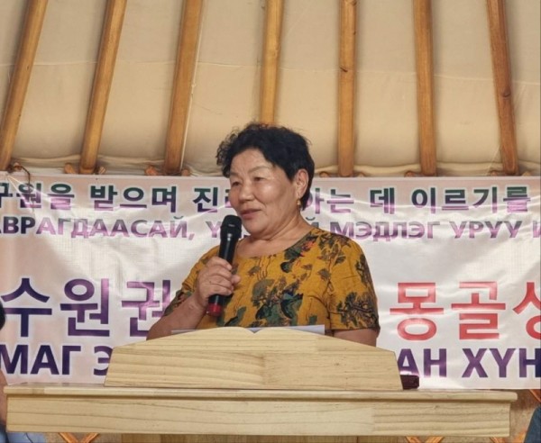 아르항가이 아이막 울지트 솜 제 3수원권선제일교회(울지트교회) 투메르 턱흐 전도사는 “2년전부터 함께 기도하며 성전을 구했다. 하고자 하는 자를 통해 일하시는 주님은 몽기총과 수원권선제일교회를 통해 응답해 주셨다. 기적과 같은 일이 일어났다. 주님과 모든 분들께 감사하다”고 인사했다.