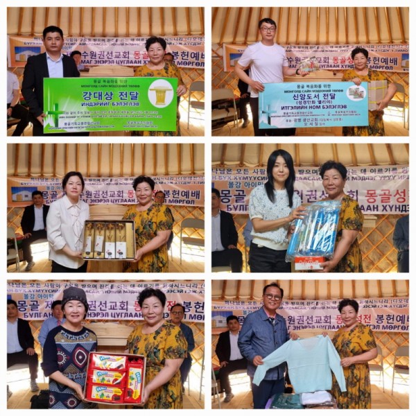 이와 함께 이종찬 목사는 몽골 제3.4.5 수원권선제일교회에 각각 게르성전 현판을 전달하고, 의류 및 문구, 간식을 선물하고, 이종찬 목사의 축도로 예배를 마쳤다.