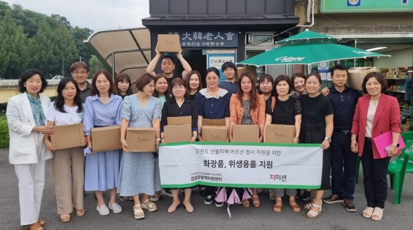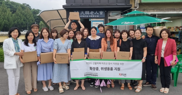 이번 물품은 산불로 피해를 입은 어르신들의 마음을 위로하고 도움이 되기를 바라는 마음으로 주방 세제, 치약, 화장품 등 생활에 필요한 용품들로 구성됐다.