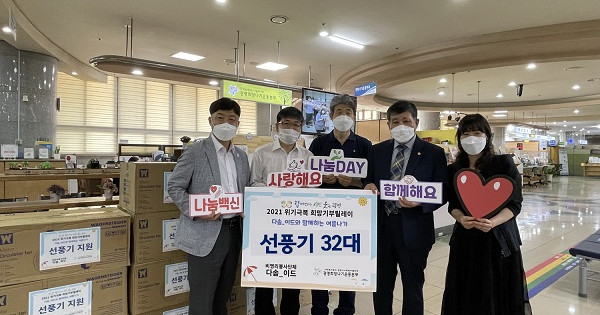 광명시사회복지협의회-광명희망나기운동본부 이상재 회장은 “코로나로 인해 올 여름 더욱 지치고 힘들텐데 전해주신 선풍기가 큰 도움이 될 것 같다.”며 “다시 한 번 귀한 나눔에 진심으로 감사드린다.”고 말했다.