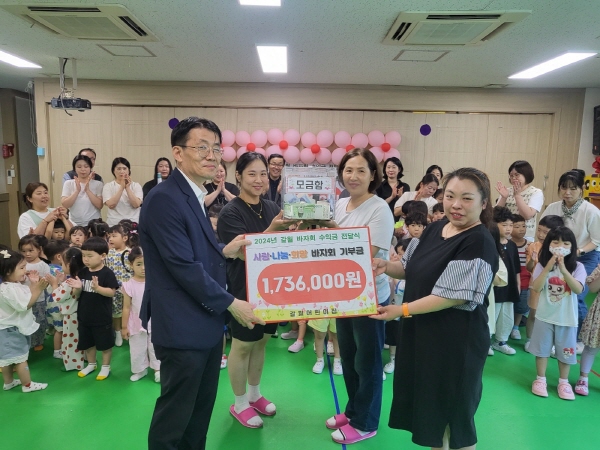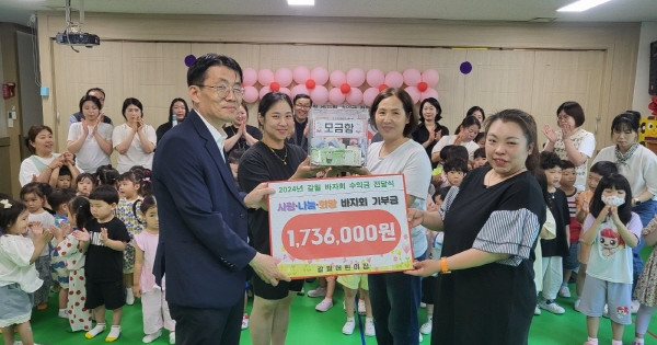 (재)사랑의장기기증운동본부(이하 본부, 이사장 박진탁) 경인지부는 지난 6월 10일, 인천시 부평구에 위치한 갈월어린이집(원장 심점숙)이 후원금 173만 6,000원을 전달했다고 밝혔다. 이날 전달된 후원금은 갈월어린이집의 교사와 원생들이 함께 진행한 ‘제11회 사랑나눔 바자회’의 수익금을 통해 마련되었다.