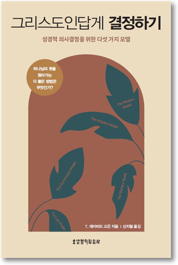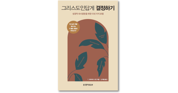 이 책은 이러한 고민을 마주하는 그리스도인들을 위해, 성경과 기독교 전통에 근거한 실천적 의사결정의 틀을 제시한다. 저자 T. 데이비드 고든은 그리스도인의 결정을 단순히 ‘옳고 그름’의 문제나 ‘개인의 양심’ 문제로 축소하지 않는다. 대신 성경 전체에 흐르는 다섯 가지 모델(하나님의 형상 모델, 하나님의 법 모델, 지혜 모델, 하나님과의 교제 모델, 영적 전쟁 모델)을 통해 그리스도인이 ‘좋은 선택’을 넘어 ‘더 좋은 선택’을 분별하도록 돕는다. 이 다섯 모델은 서로를 보완하며 함께 작동하는 통합적 사고의 틀로서, 선택의 순간마다 하나님 앞에서 지혜롭게 판단하도록 이끈다.