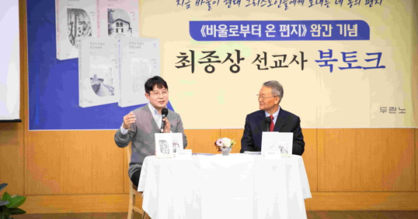 두란노서원은 지난 13일, 서울 두란노서원 본사 1층 북카페에서 〈바울로부터 온 편지〉 시리즈 완간을 기념하는 북토크를 개최했다. 이번 행사는 4권 전권의 출간을 성공적으로 마무리한 것을 기념하며, 현대의 신앙인들에게 바울이 전한 복음의 메시지를 다시 새겨보는 소통의 자리로 진행됐다.?