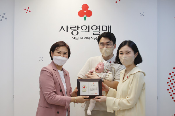 서울 사회복지공동모금회(회장 윤영석, 이하 서울 사랑의열매)에 최연소 나눔리더가 탄생했다. 그 주인공은 2022년 6월 14일생 ‘이다인 양’이다.