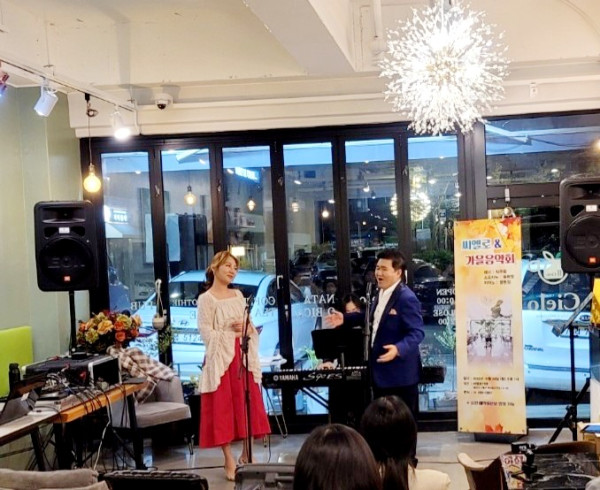 단풍이 고운 빛으로 물들어 가는 가을 밤, 지난 24일 저녁 7시, 용인 보정동 카페거리의 씨엘로(Cielo, 대표 박시은)에서 테너 박주옥과 소프라노 윤현정과 피아니스트 윤현정(동명이인)은 용인시민 초청‘보정카페거리 가을음악회’를 마련해 깊은 감동과 울림을 선사하였다.
